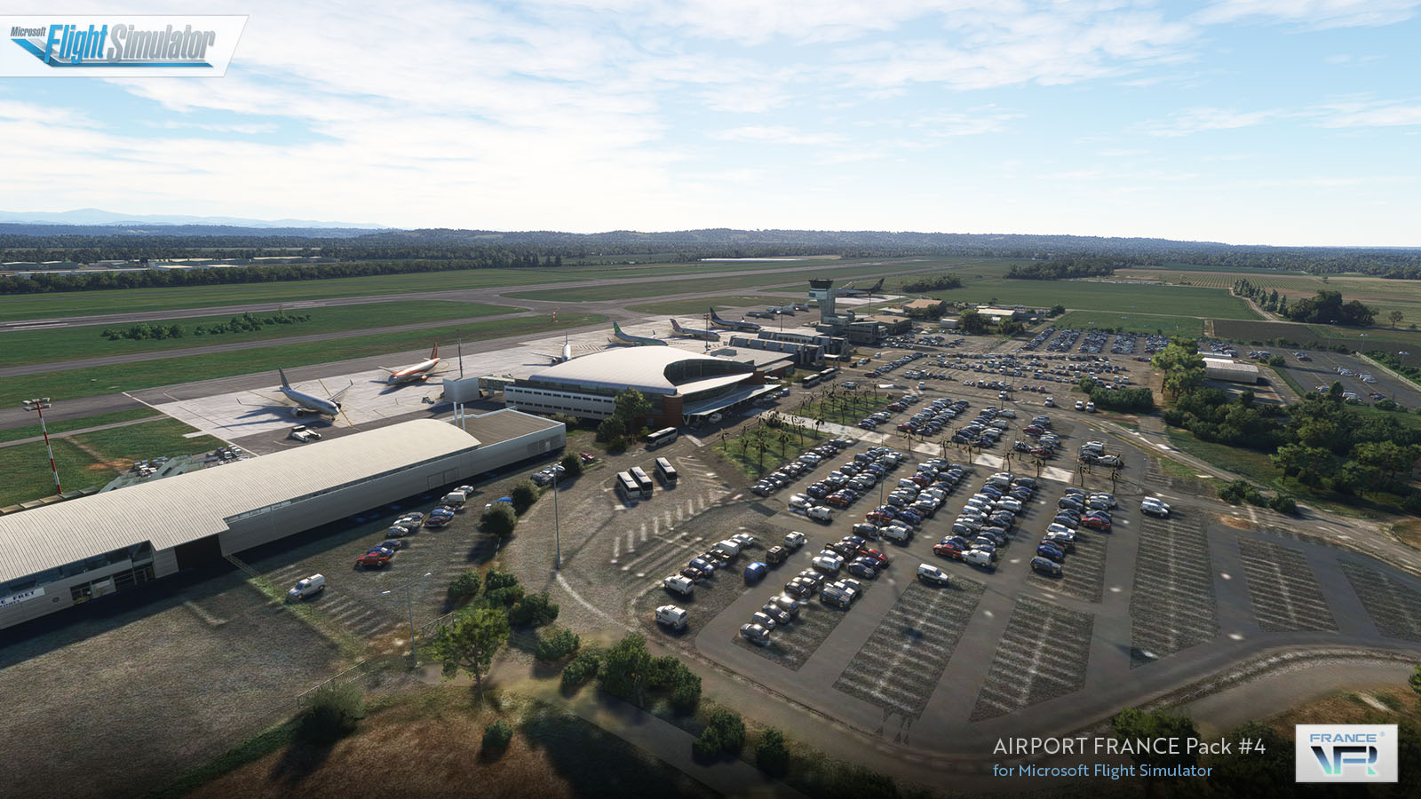 La scène Airport France pack #4 pour MSFS modélise de façon détaillée un pack de 5 aérodromes régionaux de France. Cette scène contient les aéroports suivants :