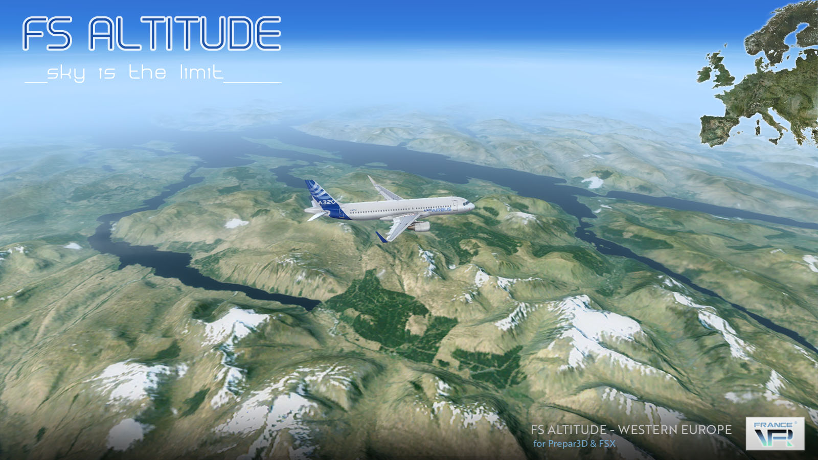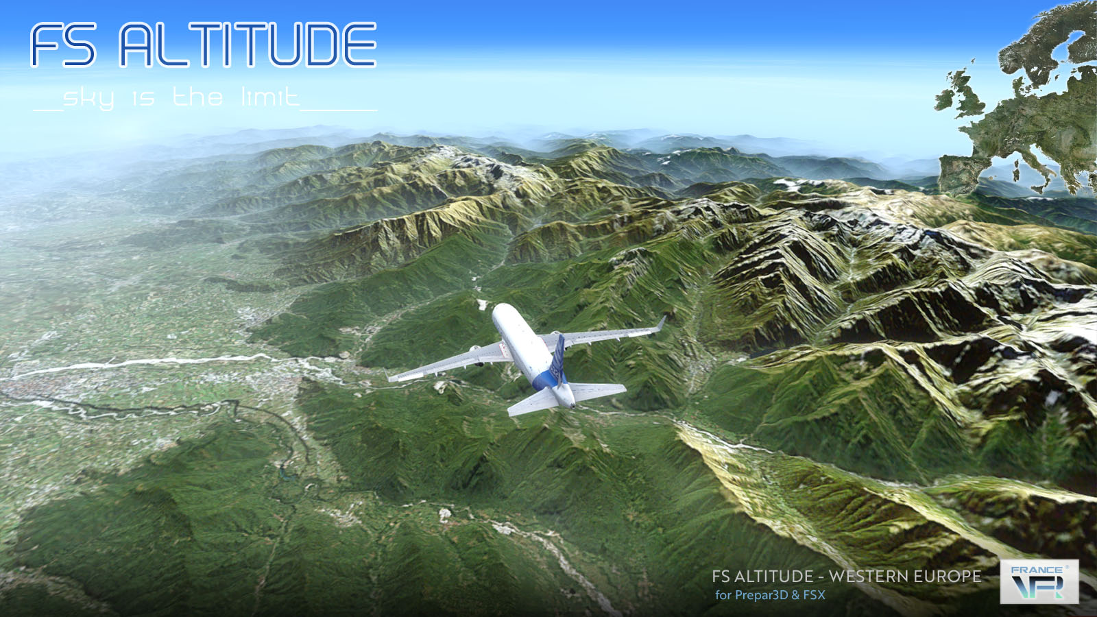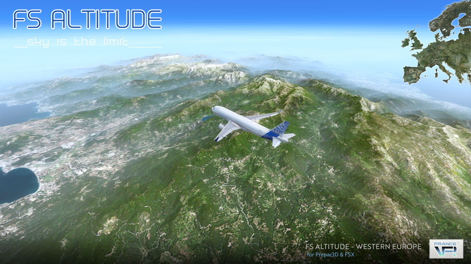 - Textures d'été uniquement (résolution 14,25m) retravaillées pour un rendu visuel optimal à haute altitude.